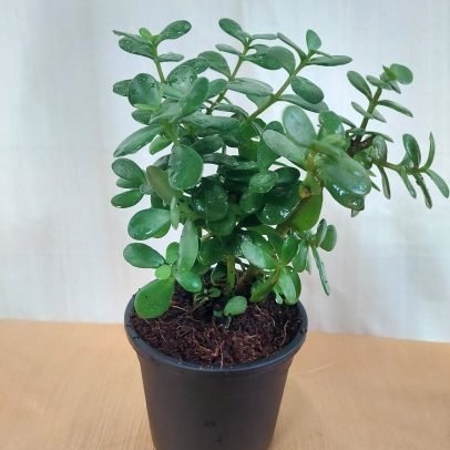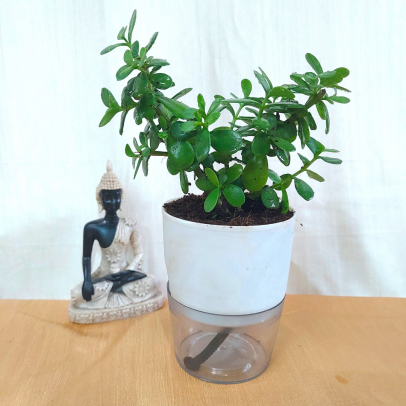 Jade Live Plant with Self Watering Pot – White Colour / Crassula ovata / Lucky Plant / Vastu Plant