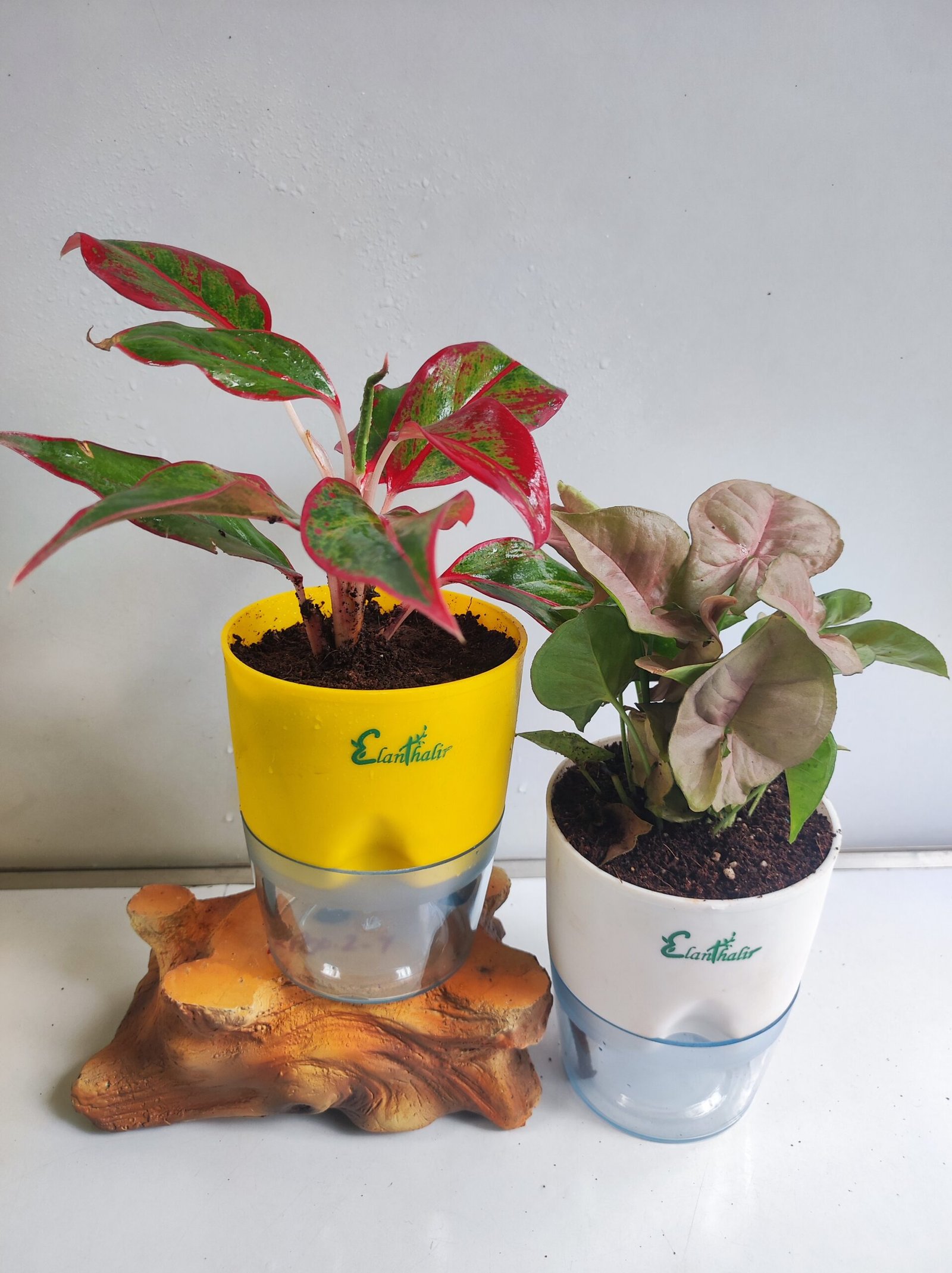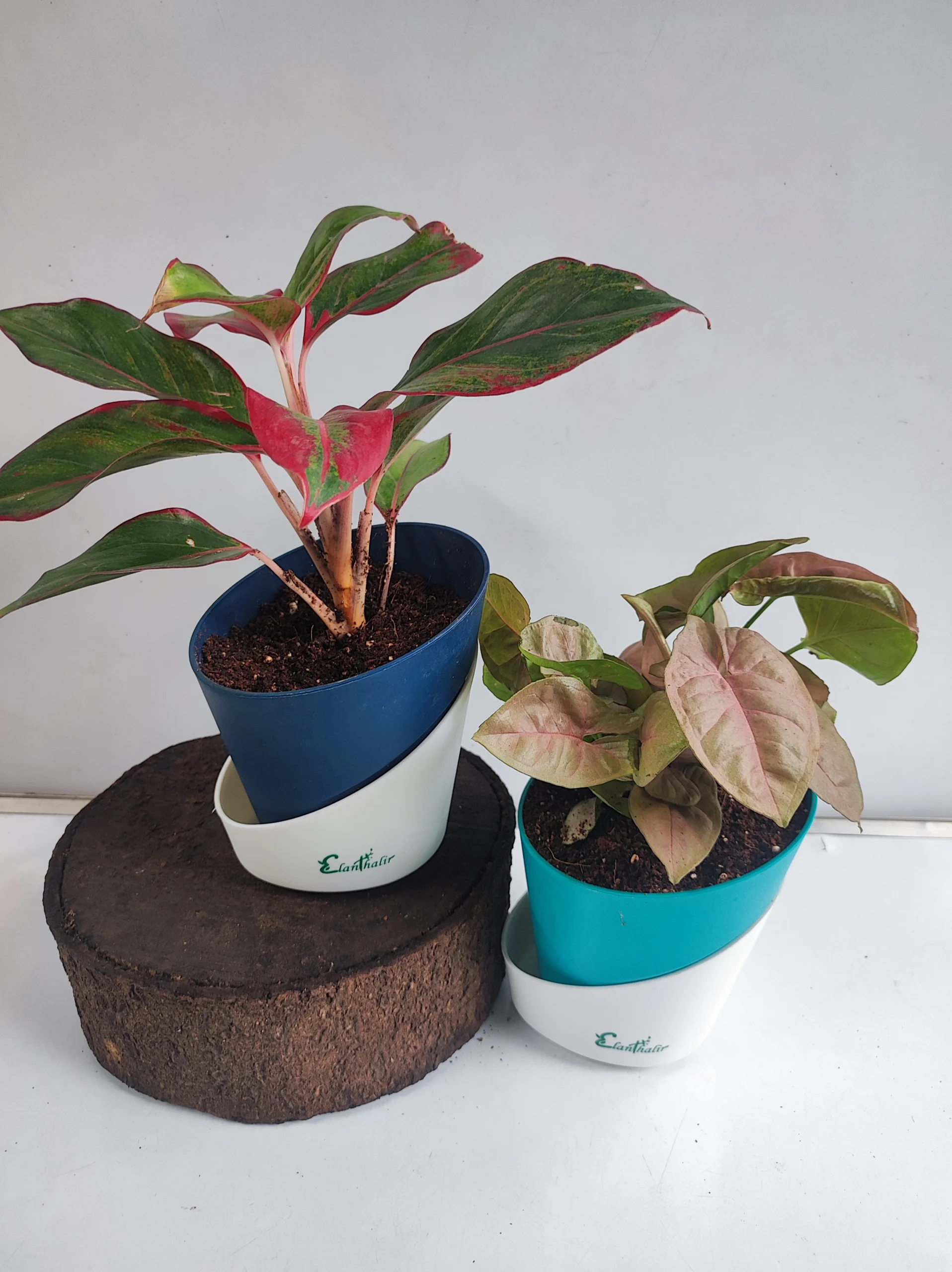SKU: Aglaonema Lipstick with Atlantis self watering pot,Syngonium Pink with self watering pot, set of 2 Category: Tags: Brand: