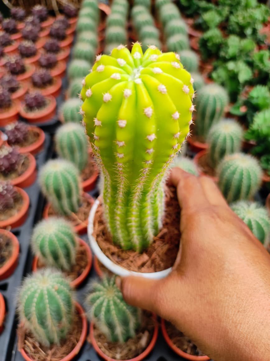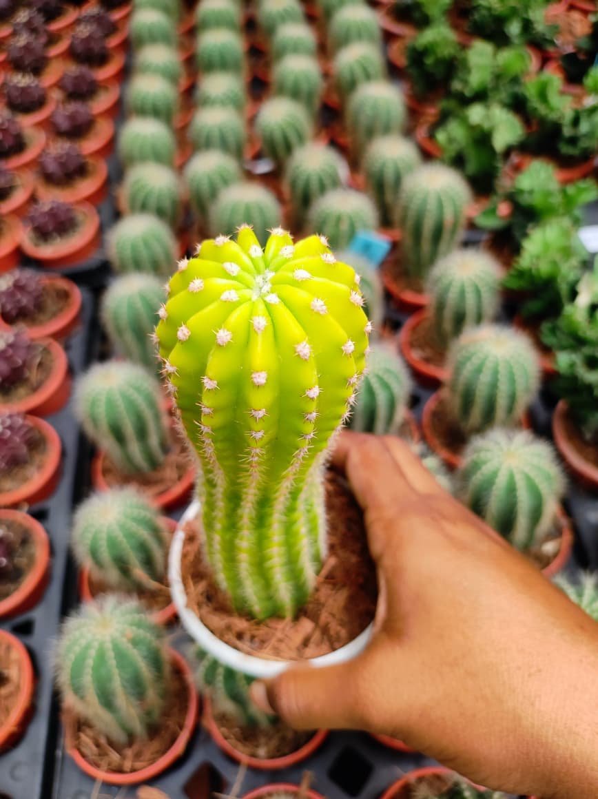 Echinopsis ‘Lemon’ is a beautiful flowering cactus known for its compact, round green body and stunning lemon-yellow blooms that instantly brighten any space. This low-maintenance plant thrives in bright sunlight and requires minimal watering, making it perfect for busy plant lovers and beginners. Ideal for pots, balconies, terraces, and sunny indoor spots, Echinopsis ‘Lemon’ adds a charming desert touch to your home or garden. With proper care and well-draining soil, it rewards you with vibrant flowers that create a striking and elegant display. 🌵🌼