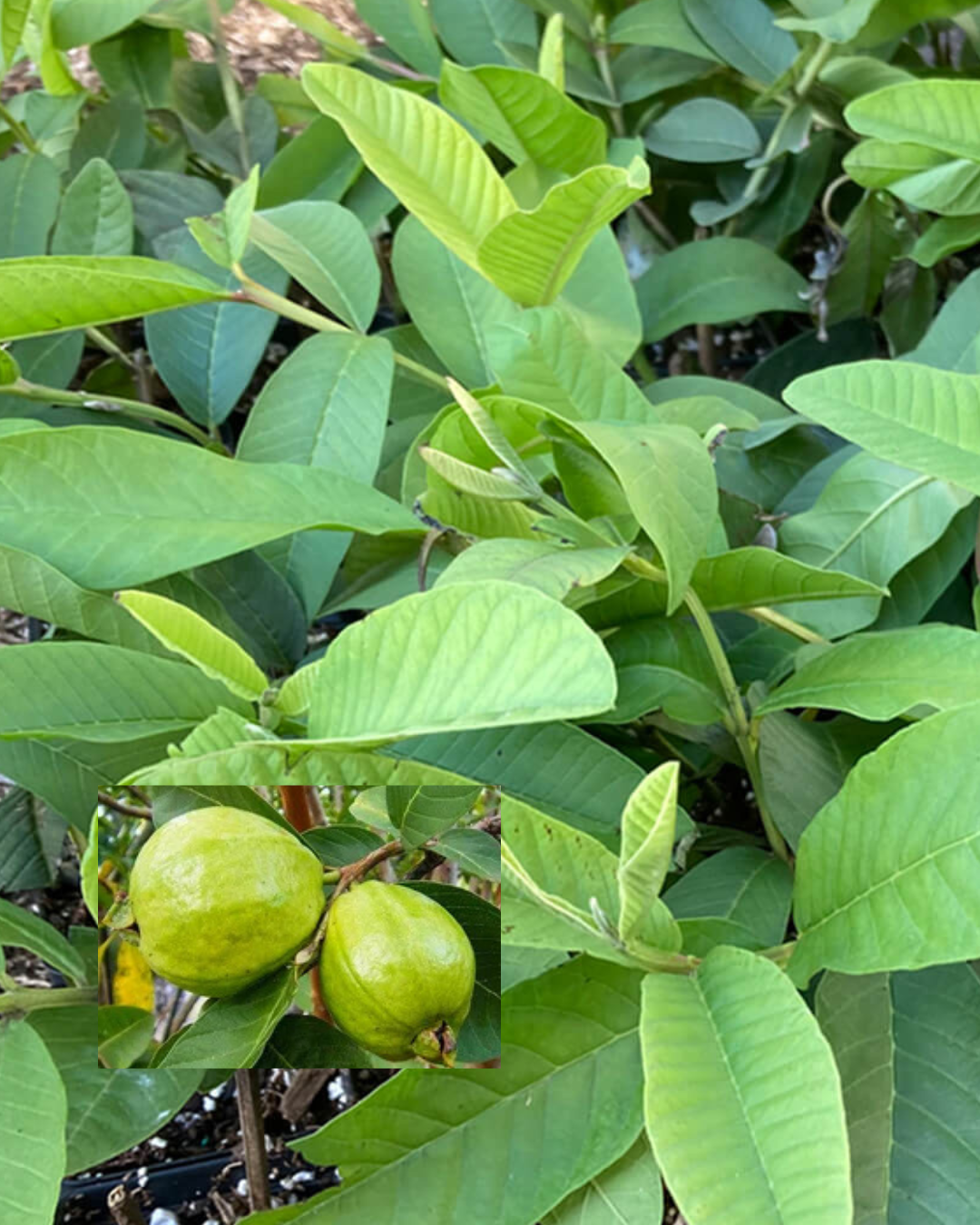 - A guava has soft, green leaves that are oval-shaped and slightly waxy.