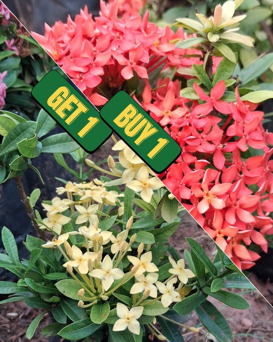 Ixora / Idli Poo Live Plants Combo ( Buy 1 Get 1 free)