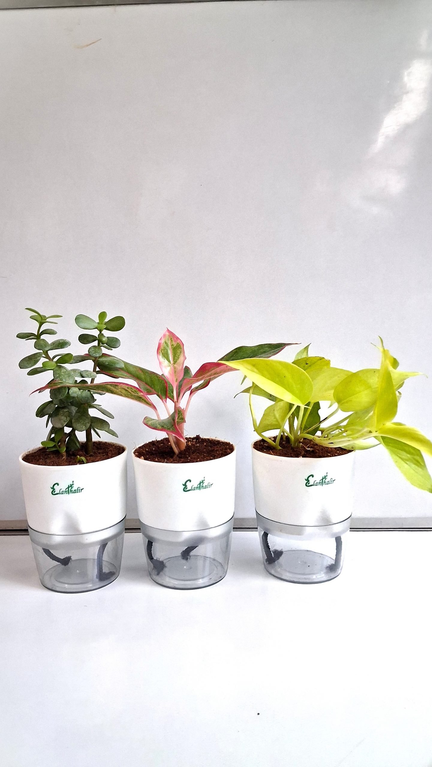 Mixed Live Plants Combo With Self Watering Pots ( Buy 2 Get 1 free)